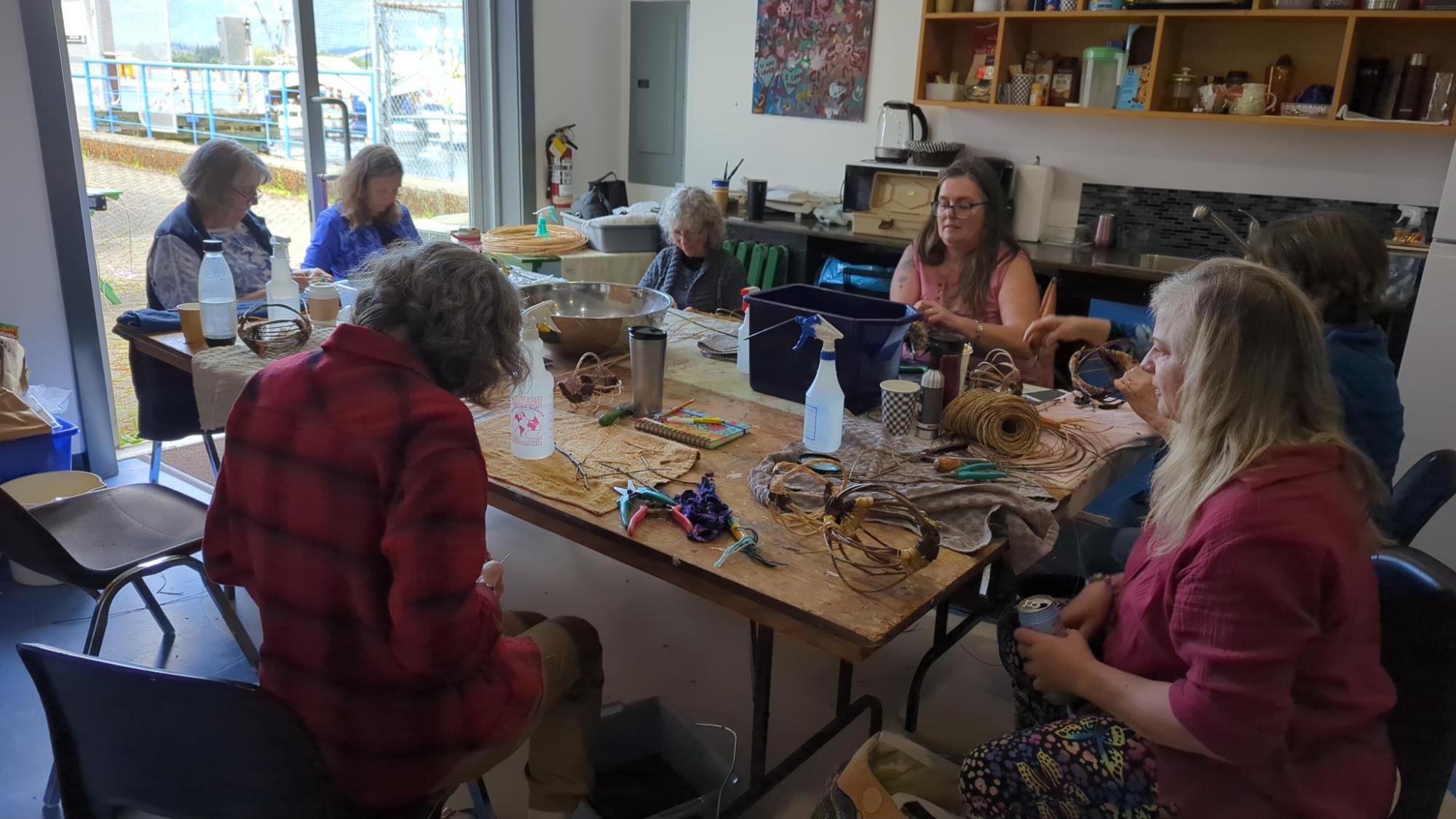 We were pleased to host Cynthia Minden from Denman Island for a one day workshop on basket weaving. Students learned the art of making ribbed baskets, and got a chance to work with local materials including cedar twigs, wisteria, and willow.